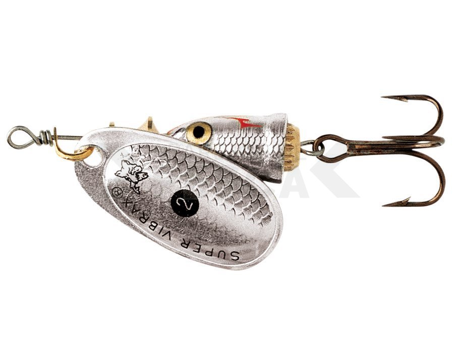 El acabado de la pala: latón maquinado, recubierto con plata o cobre, patrón aplicado, barnizado. Eje: acero inoxidable Anzuelos VMC®: agudos, endurecidos, fuertes, proporcionan una excelente penetración.