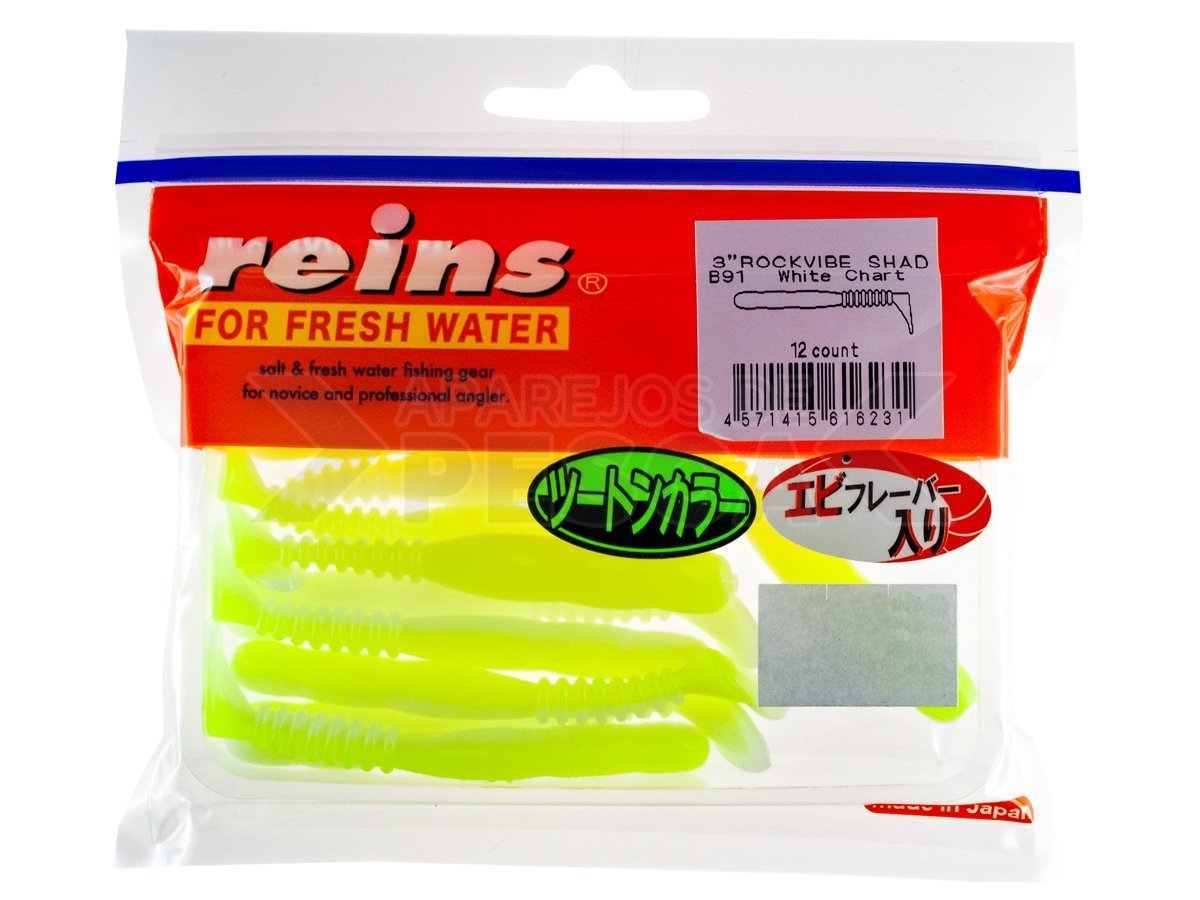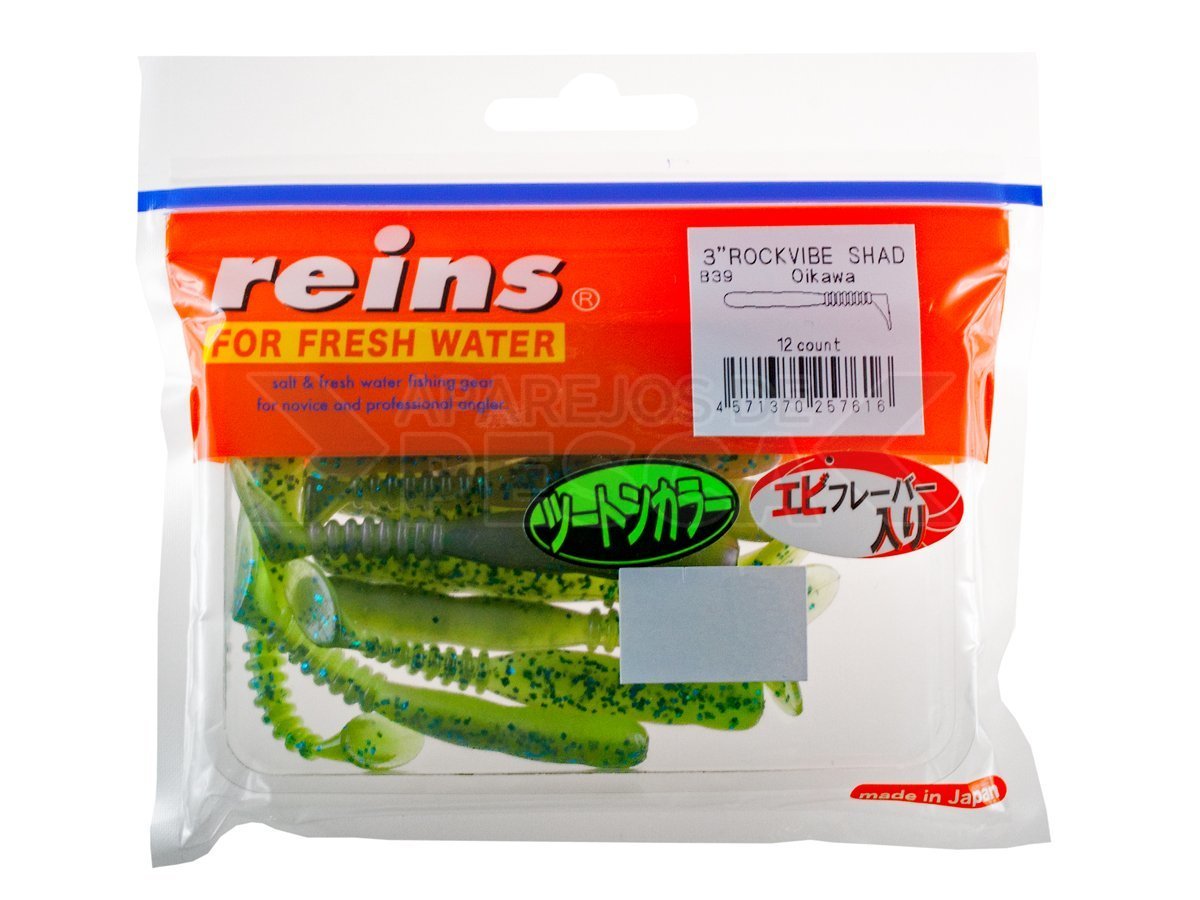 Rockvibe Shad 3 pulgadas es uno de los mejores cebos de Reins. Este cebo puede ser montado en un cabezal de jig o utilizado en el método drop-shot, es extremadamente versátil, funciona bien con todos los depredadores, sin importar si se pesca en agua salada o dulce. Este pequeño shad tiene un diseño de cuerpo ovalado (Oval Body Design), que le da un balanceo muy distinto. Las pulsaciones de alta frecuencia de la cola imitan perfectamente el nado de los alevines, los depredadores no pueden resistirlo. Rockvibe Shad 2 está impregnado de un atractor con aroma a gambas.