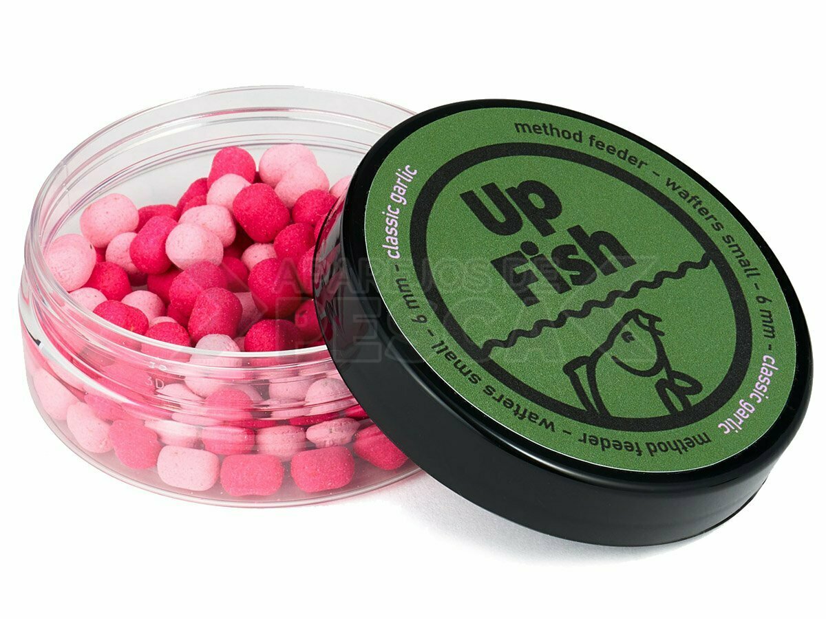 Aglio, esche intensamente profumate in due tonalità di rosa. L'odore caratteristico e intenso dell'aglio è pensato per acque "difficili" e "sporche", perfetto per storioni, grandi carpe e per il periodo autunnale, quando gli esemplari più grandi iniziano ad alimentarsi. La presentazione migliore dei wafer si ottiene montandoli su una baionetta.