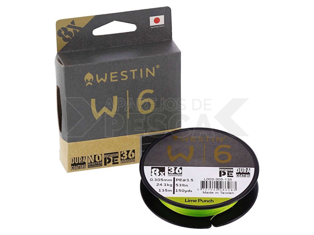 Lograr la combinación perfecta de atributos en una línea trenzada es una especie de alquimia que requiere refinamiento y repetidas pruebas para conseguir el producto final. La línea trenzada W6 se ha desarrollado utilizando un proceso de fabricación único para una amplia gama de pesca con señuelos. Hemos utilizado fibras japonesas UHMPE (polietileno de peso molecular ultraalto) de primera calidad en la fabricación del trenzado W6 para un rendimiento y resistencia increíbles. Para lograr una mayor resistencia a la abrasión y una mayor solidez, el trenzado W6 se fabrica utilizando un tejido especialmente desarrollado para esta línea que llamamos "Advanced High PIC". Esta línea trenzada 8X (ocho hebras trenzadas) tiene una fabricación de 36 PIC (entrelazados por pulgada) que le proporciona una mayor resistencia para su diámetro. Además, el entrelazado más compacto del "Advanced High PIC" consigue una superficie más suave para lances más largos y precisos. La distancia de lance es aún mayor gracias al proceso de Dura-Coating gel que le da al trenzado una superficie hidrofóbica más suave, lo que reduce la absorción de agua y el rozamiento. Para lograr la estabilidad del color, el trenzado W6 se sumerge en tanques de tinte antes de curarse en el horno para fijar el pigmento y finalmente se sella con dura-coat para una mayor durabilidad.