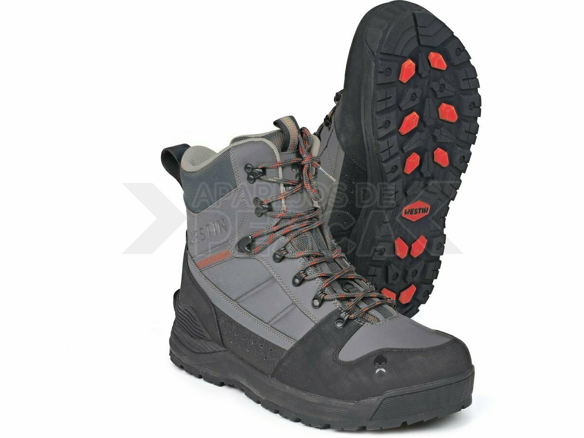 Las botas de vadeo Westin W6 son el complemento perfecto para explorar los terrenos más difíciles y llegar a esos lugares de pesca remotos. Diseñadas pensando en la comodidad y la estabilidad, estas resistentes botas de vadeo están disponibles en una amplia gama de tallas para un ajuste perfecto. Fabricadas con materiales duraderos, estas botas de media caña son robustas y, a la vez, lo suficientemente ligeras como para garantizar una comodidad total durante todo el día. Elige entre la suela de goma antideslizante o la de fieltro, según las condiciones del terreno. Para mayor seguridad en orillas resbaladizas, puede añadir fácilmente los tacos incluidos, gracias a las marcas de posición predefinidas en la suela. La suela interior ergonómica proporciona mayor estabilidad y comodidad al caminar, incluso en terrenos difíciles. Con las botas de vadeo Westin W6, podrás pescar con total comodidad, independientemente de las condiciones.